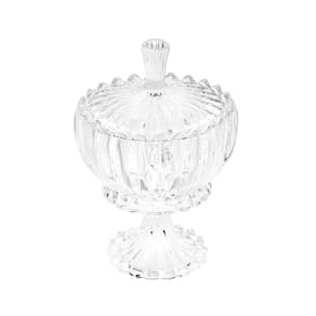 Com 25 cm de altura e cristal transparente, o potiche exibe acabamento premium e design imponente, elevando o visual de mesas, aparadores e estantes.