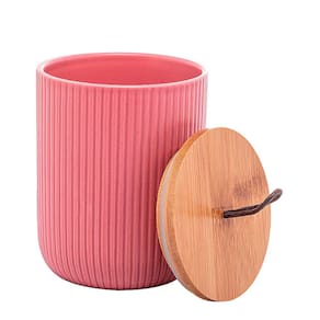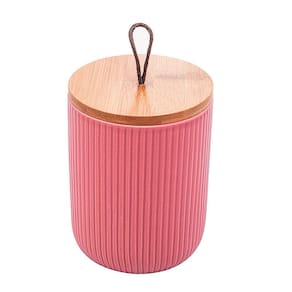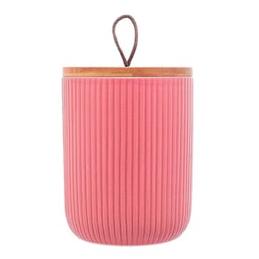 1 Potiche de Cerâmica com Tampa de Bambu e Pegador de Corda Lines Rosa 10x12,5cm 2667 - Lyor