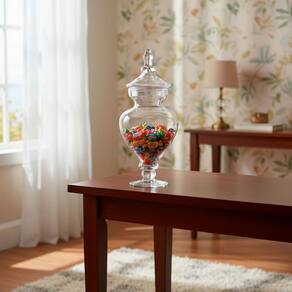 Este potiche não apenas adiciona um toque de elegância à sua decoração, mas também é uma solução prática para armazenar e exibir doces, chocolates e outras delícias.
