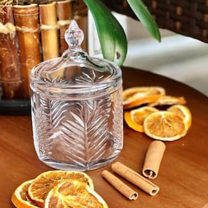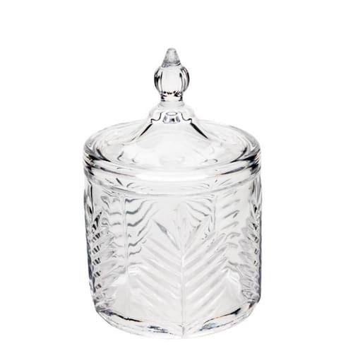 Potiche Decorativo de Vidro Cristal Palmeira com Tampa 10x15cm Lyor Bomboniere Baleiro.