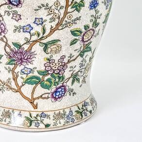 Potiche Porcelana Off-White Craquelê Floral Colorido 46Cm