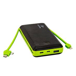 Power bank 20.000mah com adaptadores Lightning / Tipo C / Micro USB. Indicador em LED. 3 entradas e 1 saída USB. Chip de reconhecimento inteligente de voltagem. Proteção de bateria IC contra excesso de carga, descarga excessiva e curto-circuito. Suporte de saída 2.0 max 5V 2.4A. Suporte de entrada Micro-USB Quick Charge 2.0. Suporte de entrada Lightning e Tipo C max 5V 2A.Tipo