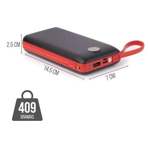Power Bank com 3 cabos integrados (USB Tipo-C, Lightning, Micro USB), display digital em LED indicador de bateria, mecanismo inteligente de controle de carga e descarga.Tipo