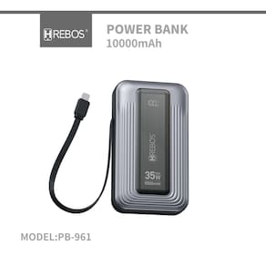 Power Bank Hrebos PB-961 Volt Expand GX, 10.000mAh, 35W de carga ultra-rápida, Display digital de precisão, Múltiplos ciclos de recarga, Portas USB-C e USB-A, Chipset de segurança integrado, Design Slim, Leve.Tipo