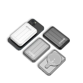 Power Bank 3 em 1 com carregamento por indução magnética (MagSafe), carregamento turbo via USB-C de 22.5W e saída USB tradicional. Capacidade real de 10.000mAh. Materiais: Plástico ABS, cobre e imãs de neodímio. Gerenciamento inteligente de energia com proteção contra superaquecimento e variações elétricas. Portátil e leve.Tipo