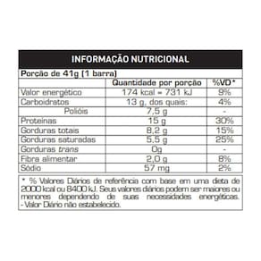 O power protein bar (12 unid de 41g) foi formulada para suplementar e trazer saciedade aos praticantes de exercício físico e ainda pode ser uma ótima alternativa de lanche para o dia-a-dia. Formulada com alto teor de proteínas (de 15g por barra,) de elevada qualidade, conta ainda com aporte de carboidratos de baixo índice glicêmico e fibras, sendo uma excelente opção para períodos de treinos mais intensos. Possui também adição de tcm (triglicerídeos de cadeia média), gordura de rápida absorção no organismo, que constitui uma rápida fonte de energia.