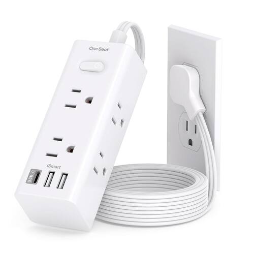 -?Faixa de alimentação de plugue ultrafino e cabo de extensão plano de 3 pés?Com apenas 0,35 polegadas e design em ângulo reto de 45 graus, o plugue de parede plana de baixo perfil One Beat é muito mais fino que os plugues tradicionais, pode se fechar facilmente na parede e se esconder na parte traseira de móveis, cama ou geladeira, sem desperdício de tomada e espaço. Cabo de extensão de 3 pés com apenas 3 mm de espessura, feito de cobre puro, que tem melhor capacidade de transporte de corrente (15A)