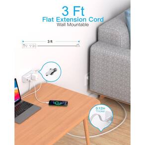 -?Adaptador de parede plana e régua de alimentação de mesa com portas USB?Os dois orifícios de montagem na parte traseira permitem que esse filtro de alimentação seja instalado com segurança em vários aplicativos, economize espaço e organize sua área de trabalho.