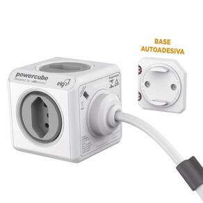 Multiplicador 4 Tomadas Bivolt + 2 USB 2.4 e Cabo 1,5m. A estrutura compacta do PowerCube o torna o menor adaptador múltiplo de tomadas do mundo em formato de cubo. O PowerCube Extended Cinza possui cabo de 1,5 metro para utilização afastada da fonte de origem, 2 portas USB de 2.4. A para carga rápida e ainda permite expandir uma tomada em até 4 pontos de energia e livre de bloqueios. Com seu design inovador, todas as tomadas são utilizadas sem que nenhum plugue impeça a conexão da tomada ao lado sendo facilmente ligados em qualquer ambiente como residências, hotéis e ambientes corporativos. Versátil, o modelo Extended USB também acompanha uma base autoadesiva (dock station) e removível sem deixar resíduos, que permite fixação em superfícies planas como paredes ou mesas. Segurança! Seu exclusivo e inovador sistema de proteção para crianças (Child Lock) bloqueia a entrada das tomadas e impede que qualquer objeto seja inserido individualmente nos orifícios fase e neutro. A entrada é liberada somente quando os pinos entrarem na tomada simultaneamente. Para proteção dos equipamentos, o PowerCube possui disjuntor resetável de 10A sem necessidade de substituição. Em caso de sobrecarga e picos de energia, basta resetá-lo. Bivolt automático, com potência máxima de 1270W em 127V ou 2200W em 220V (total de tomadas). Estrutura produzida em polímero antichamas e conectores internos em cobre de alta pureza. Com garantia de um ano a linha PowerCube possui mais de 20 certificações nacionais e internacionais, incluindo Inmetro. Além de ser vencedora do prêmio Reddot Award de design..