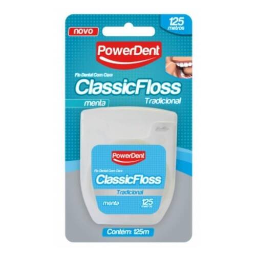 Powerdent Power Classic Fio Dental Tradicional 125m DESCRIÇÃO: FIO CLASSIC FLOSS TRADICIONAL 125M. AÇÃO/ATIVOS: Fibra de monocabos de polipropileno torcidos que garante resistência a ruptura.Impregnado com cera Microcristalina, Cristais de Menta e Edulcorante.Desliza com facilidade. Possui baixo grau de desfiamento.Estojo transparente que informa antecipadamente o término do produto.MODO DE USAR: Enrole aproximadamente 40 centímetros do fio ao redor de cada dedo médio, deixando uns dez centímetros entre os dedos.Segurando o fio dental entre o polegar e indicador das duas mãos, deslize-o levemente para cima e para baixo entre os dentes.Passe cuidadosamente o fio ao redor da base de cada dente, ultrapassando a linha de junção do dente com a gengiva. Nunca force o fio contra a gengiva, pois ele pode cortar ou machucar o frágil tecido gengival.Utilize uma parte nova do pedaço de fio dental para cada dente a ser limpo.Para remover o fio, use movimentos de trás para frente, retirando-o do meio dos dentes.ESTE ANÚNCIO CONTÉM: 01 Powerdent Power Classic Fio Dental Tradicional 125mPowerdent Power Classic Fio Dental Tradicional 125m