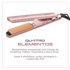 A Prancha Alisadora da Linha by Juliette Qu4tro Elementos traz um revestimento especial enriquecido com infusão de Cerâmica, Titânio, Tourmaline e Nano Silver. Esses 4 elementos, juntos, protegem seus fios e garantem uma aparência mais saudável aos cabelos, com brilho intenso, maciez e sem frizz. Saiba mais sobre a Prancha Alisadora P-JU-01: