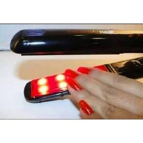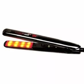 Infravermelho com aquecimento por ultrassom, permanecendo fria a placa de titanio para não agredir os cabelos com alta temperatura.