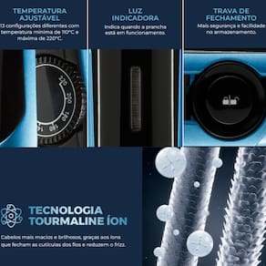 A tecnologia de íons Tourmaline atua diretamente no problema do frizz. Ela sela as cutículas do fio, reduz a eletricidade estática e mantém a hidratação natural.
