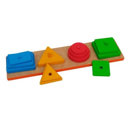 Medidas aproximadas: Base 33 x 9 cm A brinque e leia tem prazer tem atendê-los Prancha de formas geométricas coloridas em madeira