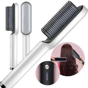 Prancha Escova Alisadora Com Pente Profissional Bivolt Descrição: PONTAS MODELADAS:A Escova Alisadoraalém de alisar seu cabelo é capaz de modelar as pontas da forma que desejar. CABELO SEM FRIZZ E SAUDÁVEL: A escova de alisamento proporciona um efeito vivo e brilhante, sem prejudicar e quebrar o seu cabelo, deixando-o sedoso e fácil de pentear .Bastaescovar o cabelo uma vez para notar a diferença e ver os resultados, umaspecto vivo e natural. ECONOMIA DE TEMPO E ANTI QUEIMADURA: Tecnologia de aquecimento, levam apenas alguns instantes paraestar pronta para uso,economize seu tempo! As unidades deaquecimento entre os dentes evitam que seu couro cabeludo queime,protegendo você e suas mãos. TECNOLOGIA ANION HAIR CARE: A placa de aquecimento liberanano ânions que formam uma camada protetora do seu cabelo , protegendo o cabelo do ressecamento,diminuindo a perca e quebra do seu cabelo. Especificações/Características do produto: - Tipo de Item: Prancha Alisadora - Tensão de entrada: 110v ~ 220V (Bivolt) - Plugue: Padrão (EU) - Min. temperatura:130 °C - Max. temperatura:200 °C - 5 Intensidades - Potência: 45w - Frequência nominal: 50Hz-60Hz - Tamanho: Aprox. 27cm x 4,5cm x 5cm - Peso Aproximado: 270g Itens inclusos: 1x Escova Pente Alisadora de Cabelo Bivolt 1x Manual