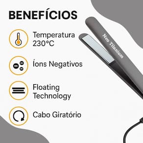Transforme seus cabelos com qualidade de salão usando a Prancha Alisadora Profissional Neo Titanium da Lizz Professional.