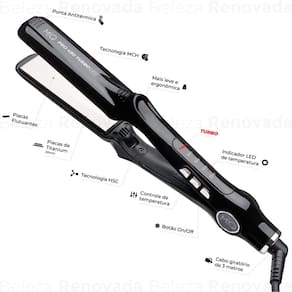 A Chapinha Profissional Mq Pro 480 Turbo é perfeita para todos os tipos de cabelo. Com suas placas de titânio, ela alcança uma temperatura máxima de 252 C, garantindo resultados incríveis. Seu design na cor preta com detalhes prateados é elegante e moderno. Além disso, possui função turbo e é iônica, deixando os fios mais brilhantes e sem frizz. Com regulador de temperatura, você pode ajustá-la de acordo com suas necessidades. essa oportunidade de ter um cabelo liso e perfeito com a Chapinha Profissional Mq Pro 480 Turbo. Marca: Não Informado