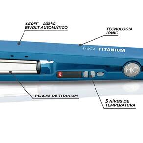 Revolucionam a maneira como o cabeleireiro faz progressivas, alisamentos e modelagens. Bivolt Automático e Floating Plates A prancha de cabelo Titanium azul vem com função de bivolt automático e combina placas ultra lisas com o sistema Floating Plates de amortecimento das placas durante a passada, dessa forma o profissional tem mais segurança e conforto na hora de ajustar as mechas. Placas de Titanium Ultra Lisas Conduz o calor ultra-alto uniformemente e resistem à corrosão, com a tecnologia mch que proporciona um aquecimento ultra rápido e recuperação imediata da temperatura. Principais Características Cabo giratório 3 metros Tecnologia Ionic antifrizz Placas Ultra Lisas de Titanium 32mm de largura Tecnologia mch reposição de calor imediata 5 níveis de temperatura chegando até 232ºC/450ºF Floating Plates permite acomodar a mecha nas placas sem que o profissional tensione o punho ou mão.