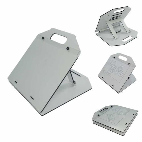 Fabricada em mdf de 6mm com tecnologia digital de corte a laser, a prancheta possui até 7 níveis de regulagem, se adequando a sua necessidade de estudo.