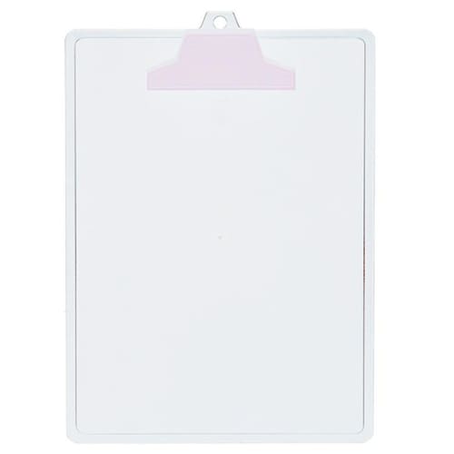 - Prancheta A4 em poliestireno com prendedor plástico acompanhando a cor da prancheta.