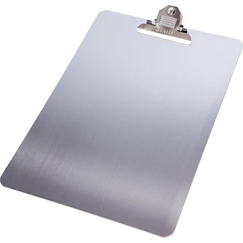 Prancheta Aluminio Oficio C/Prendedor De Metal Base totalmente produzida em alumínio com pegador metálico. Dimensões 35 x 26 cm, espessura 2 cm. Ean: 7898449083868