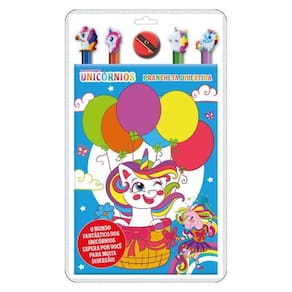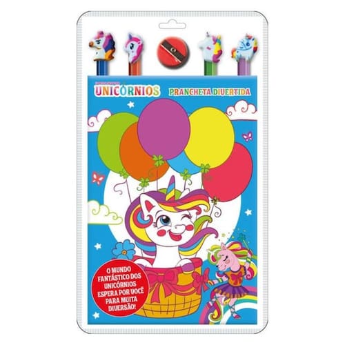 Prepare-se para uma aventura mágica no mundo dos unicórnios, cheia de diversão! Com a Prancheta Divertida Floresta Encantada, a diversão é garantida! Com 4 lápis de cor para deixar suas criações ainda mais bonitas e coloridas, 4 borrachas e um apontador para manter seus lápis prontos para novas aventuras! É hora de soltar a imaginação e se encantar com os unicórnios mais fofos e divertidos da floresta encantada!