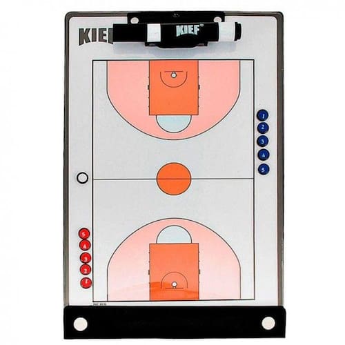 Perfeita para criar as estratégias e passá-las aos seus jogadores. Possui duas opções para demonstração de estratégias em uma mesma prancheta. Pode usar o jogo de imãs que simulam os jogadores e a bola ou o canetão com sistema de limpeza a seco. Características Técnicas Material: metal com acabamento em plástico Marca: Kief Modelo: Magnética Basquete Ean: 8844992346980