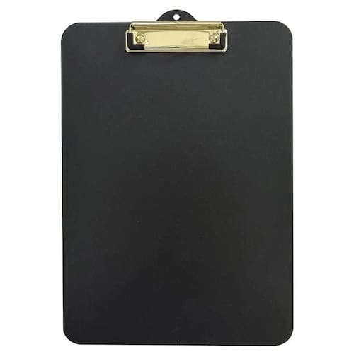 As pranchetas com acabamento sofisticado e prendedores metálicos coloridos viraram um verdadeiro hit são muito mais do que simples suportes para anotações: elas invadiram as paredes de escritórios, home offices, quartos, salas e estabelecimentos comerciais, conquistando status de itens de decoração para usar e abusar seus tampos são feitos em chapa de fibra de madeira de reflorestamento mdf de 5,2 mm, com acabamento em pintura preto fosco 100% uv. Os prendedores são metálicos. As pranchetas medem 33,5 cm de comprimento e 23 cm de largura, com os quatro cantos arredondados. Podem ser usadas com giz, giz líquido ou de forma tradicional com papel. Atenção: imagem meramente ilustrativa. Pode ocorrer mudanças no tom da cor da tela do celular/pc para o produto real ou mudanças na embalagem do produto sem aviso prévio por parte do fabricante. Marca: Não Informado Ean: 7898452183586