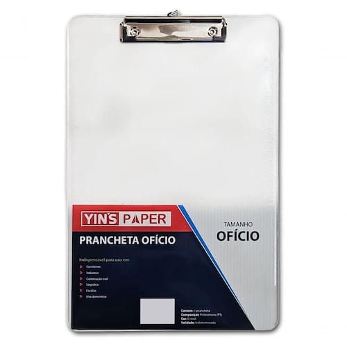 Principais Características:- Medidas: 35 x 24 cm (formato ofício)- Material: PS (poliestireno) transparente de alta qualidade- Prendedor metálico reforçado, com mola firme e acabamento polido- Laterais com marcações de régua (em centímetros e milímetros)- Estrutura rígida e lisa para apoio de escrita confortável- Design cristalino e elegante, ideal para e escolar- Resistente, leve e fácil de higienizar- , e !