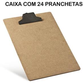 Prancheta em MDF tamanho A4/Ofício, com prendedor plástico.