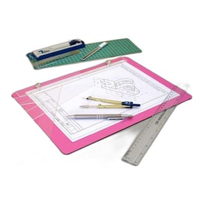 Prancheta em madeira tipo mdf com acabamento superficial pink medidas 35x25 cm aproximado. Indicadapara cursos de desenho técnico, engenharias, arquitetura, construção civil,entre outros. Possui prendedores rosqueáveis em metal e régua acrílica transparente.