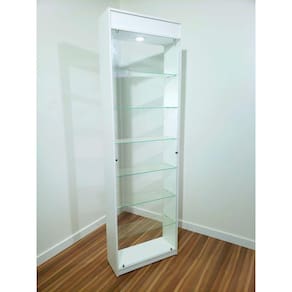 Comprimento: 63 cm Altura: 210 cm Profundidade: 25 cm Distância Entre as Prateleiras: 28 cm Número de Prateleiras: 6 prateleiras removíveis em vidro temperado, proporcionando flexibilidade na organização.