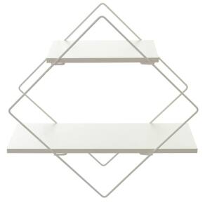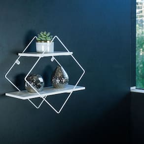 Prateleira Decorativa Losango com estrutura em aço e pintura eletrostática e prateleira de madeira MDP multifuncional para sala de estar, sala de jantar, quarto, cozinha e qualquer ambiente, ideal para organização e decoração da casa. Organize todos os ambientes. Acabamento: Pintura Ambiente Principal: Sala de Estar Complexidade da Montagem: Baixa: pode ser montado por uma pessoa sozinha Cor: Branco Cor do Produto: Branco Escala de Brilho: Fosco Itens Inclusos: 1 Prateleira e Manual de Montagem Manual de Montagem e Instalação: https://product-hub-prd.madeiramadeira.com.br/938783/documents/369f5c37-db19-4bfd-ad9d-f83c3eadeb1c2305822547817255562468307.pdf Material Principal: Aço Necessita Montagem: Sim Peso: 0,78 kg Peso Máximo por Prateleira: 2 kg Possui Espelho: Não Possui Quantidade de Prateleiras: 02 Recomendações de Uso, Manutenção e Limpeza: Recomendável instalação em parede de alvenaria. Para limpeza, utilize sabão ou detergente neutro e esponja macia. Nunca use solventes, objetos cortantes ou abrasivos. Sistema de Montagem: Parafuso cabeça chata Phillips Ø4,0x40mm, Parafuso cabeça panela Phillips Ø3,5x9,5mm, Bucha expansiva S6mm Suporta Até (kg): 4 kg