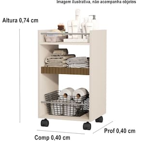 Prateleira armário banheiro multiuso organizador rodizio nova cor perola - comprar moveis para sua casa Prateleira multiuso amon, criada para inovar na organização do seu ambiente. Produto exclusivo comprar móveis em casa para deixar seu ambiente mais bonito e sofisticado procure nossas redes sociais e confira todos nossos produtos e qualidade de atendimento : Produto com video de montagem no nosso canal, acesse nossas redes sociais: comprar móveis em casa Dimensões do produto montado Altura: 0,74 cm largura: 0,40 cm profundidade: 0,40 cm Caractersticas: Mdp 12mm 4 rodizios 4 hastes plasticas Produto não acompanha cesta e objetos, foto meramente ilustrativa Montagem: Este produto acompanha kit de montagem + manual de instrução detalhando passo a passo de como montar. A montagem do produto deverá ser feita por um , para que não ocorram danos no produto. não nos responsabilizamos por erro de montagem Atenção: a montagem não é oferecida pela comprar móveis em casa, a montagem do produto é por conta do comprador. Observações importantes: A é de 90 dias por defeitos de fabricação. Se no ato de recebimento do produto o cliente verificar que o produto não está em prefeito estado, principalmente por ocasião de transporte irregular, o cliente deverá recusar o recebimento do produto e entrar em contato para resolver o problema. Podem haver variações referentes à tonalidade das cores expressas nas fotos, por conta de fatores como iluminação e brilho de cada monitor/celular. Fotos meramente ilustrativas, não acompanham os produtos de decoração. Atenção, se atente a politica de troca/devolução da empresa. Marca: Não Informado Ean: 7794038678838