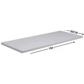 - Material 100% MDF 15 mm de espessura; - Com fita de borda em PVC; - Cor branco fosco nas duas faces; - Medidas 100cm x30cm;