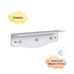 A Prateleira com Cabideiro Decorativo Infantil de Parede da Completa Móveis é a solução perfeita para decorar o quarto das crianças. Com um design simples e elegante é ideal para organizar livros e itens de decoração, transformando o ambiente em um lugar aconchegante.