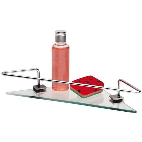 Prateleira de Canto da linha Standard da Jackwal, com acabamento em latão cromado. A cromagem do metal é um dos melhores acabamentos que garante a qualidade e a durabilidade do produto.