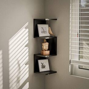 Prateleira de Canto Lyra 3 Nichos Decorativos Preto para Sala Quarto Livros