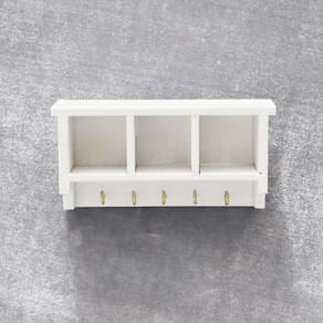 Tamanho: Comprimento 8,2 cm x largura 2,5 cm x altura 4,1 cm Material: madeira Peso: 21 g Solução de armazenamento compacta: esta prateleira de madeira em escala 1:12 possui 3 compartimentos e 5 ganchos, proporcionando armazenamento perfeito para itens em miniatura e acessórios pendurados em salas de casas de bonecas. Acabamento branco elegante: o design branco simples complementa qualquer decoração de casa de bonecas, tornando-a ideal para uso em quartos, cozinhas ou salas de estar. Perfeito para brincar de fingir: um ótimo acessório para incentivar brincadeiras criativas, permitindo que as crianças organizem itens em miniatura e criem ambientes realistas de casas de bonecas. Não é um brinquedo para crianças pequenas: observe que este é um modelo em miniatura, não adequado para crianças menores de 3 anos devido às peças pequenas. Serve para casas de bonecas em escala 1/12: projetado para caber perfeitamente em casas de bonecas em escala 1:12, este rack de armazenamento é uma adição funcional e decorativa a qualquer espaço em miniatura.