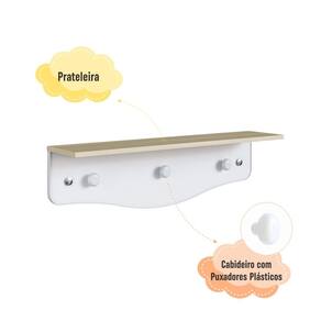 Transforme o quarto do seu bebê com a Prateleira Infantil Linha Encanto da Completa Móveis! Funcional e charmosa, ela combina organização e estilo, oferecendo um espaço ideal para acomodar brinquedos, livros e itens decorativos. Além disso, conta com 3 cabideiros para pendurar casacos, roupinhas e acessórios, mantendo tudo sempre à mão. Feita em MDP resistente com acabamento fosco, é perfeita para compor um ambiente aconchegante e organizado.