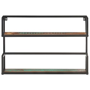 do interior. - Estilo rústico: feita de madeira maciça recuperada, esta prateleira incorpora um estilo rústico que enfatiza a beleza natural e o artesanato. Cada peça apresenta variações únicas de cor e granulação, criando um ponto focal atraente