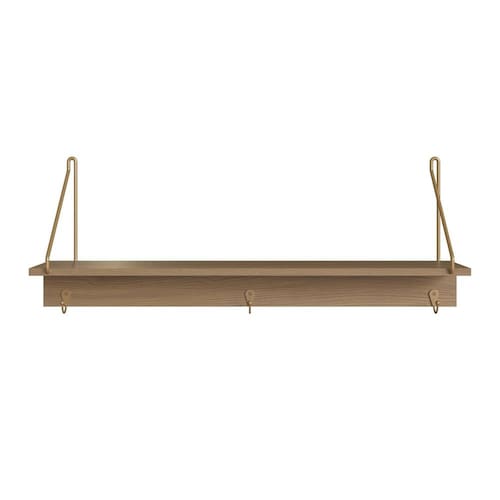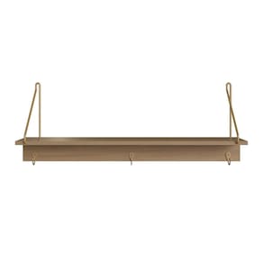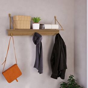 A Prateleira Decorativa Multiuso é confeccionada em madeira ecologicamente correta, móvel composto de MDP BP 15mm, estrutura metálica de arame 8mm com acabamento em pintura epóxi fosco, materiais que trazem resistência e durabilidade ao produto. Possui espaço para colocar itens decorativos e ganchos para pendurar acessórios e roupas, uma peça indispensável no dia a dia, contribui com a organização e agrega praticidade e modernidade ao ambiente. Medidas(AxLxP):34,2x90x23cm Acabamento: BP Ambiente Principal: Sala de Estar Complexidade da Montagem: Baixa: pode ser montado por uma pessoa sozinha Cor: Hanover/Dourado Cor do Produto: Hanover/Dourado Escala de Brilho: Fosco Informações Complementares: As imagens são ilustrativas e as cores podem sofrer variações de tonalidade, conforme o ajuste de configuração do monitor, os objetos decorativos não estão inclusos. Itens Inclusos: 1 Prateleira, Kit ferragens e Manual de Montagem. Linha ou Coleção: Oslo Manual de Montagem e Instalação: https://product-hub-prd.madeiramadeira.com.br/926527/documents/1731dec4-3f27-4146-8f3b-c071371142909594d176bddde1584039527894.pdf Material da Prateleira: MDP Material Principal: MDP Necessita Montagem: Sim Origem do Produto: Nacional Peso: 2,85 kg Peso Máximo por Prateleira: 7 kg Possui Espelho: Não Possui Possui Fundo: Não Possui Portas: Não Possui Prateleiras: 01 Possui Toalheiro: Não Recomendações de Uso, Manutenção e Limpeza: Limpar utilizando apenas pano umedecido com água, nunca utilizar produtos químicos ou abrasivos, pois estes danificam o revestimento do móvel. Sistema de Montagem: Parafusos e Cavilhas Suporta Até (kg): 10 kg Tipo de Nicho: Prateleira