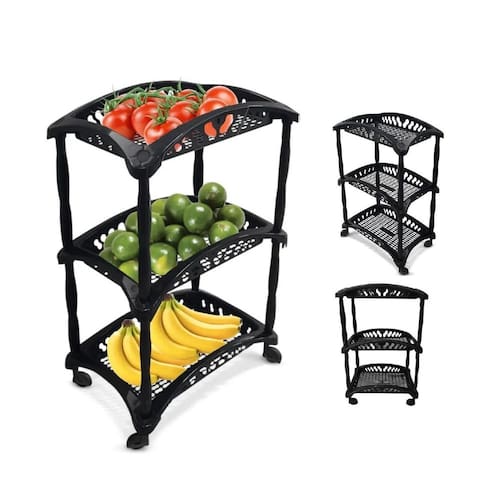 Prateleira e Fruteira Vertical Organizadora 3 Andares Preta Organizador Vertical com 3 Andares - Prático e Versátil