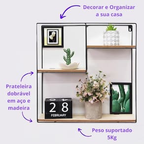 Prateleira em Aço Nicho Decorativo Enfeite de Parede Quadrada Cor: Preta Descrição