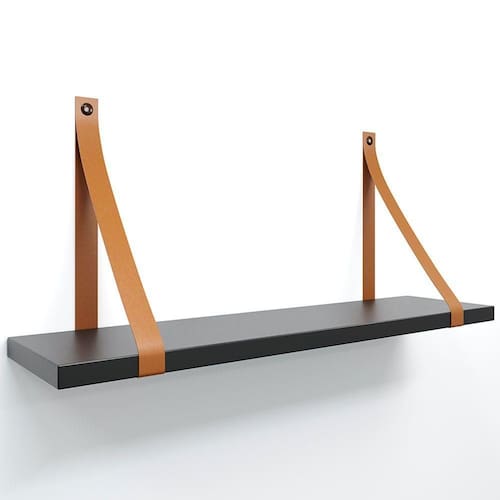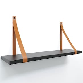 Prateleira Em Mdf Preto 50x15cm Com Alça Cor Caramelo