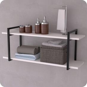 Prateleira estilo industrial banheiro parede gnd pb 80cm Ter um banheiro organizado traz leveza e praticidade para sua rotina, para que ele fique em ordem, é necessário o uso de alguns produtos. O nicho granada de parede é indispensável, além de dar um toque especial na decoração. Produzido em aço com camada anti-ferrugem de fosfatização e pintura eletrostática epóxi, com prateleiras de mdp de primeira qualidade.Acompanha tampões projetados exclusivamente para esconder as cabeças dos parafusos de fixação na mesma cor dos arcos. Especificações técnicasÁrea de instalação: quartos, salas de jantar, cozinhas, banheirosMaterial: aço e mdp Dimensões do tubo da estrutura: tubo quadrado 20x20 mm Acabamento da estrutura de aço: preto Acabamento do mdp: branco Medidas do nicho Comprimento: 80cm Altura: 41cm Profundidade: 29cm Distância entre as prateleiras: 30cm Medidas da placa de mdp Comprimento: 80cm Espessura: 1.5cm Profundidade: 24.5cm Tipo de fixação: parafusosQuantidade de fixação: 4 parafusosKit de parafusos e buchas para instalação: sim