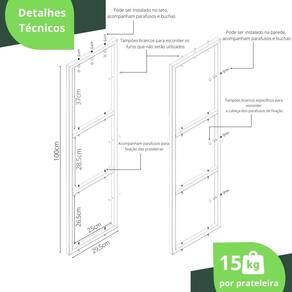 2 Arcos, 3 Prateleiras 60cm, Buchas, Parafusos, Tampões, 1 Suporte de 50cm e 12 Ganchos