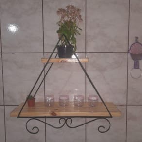 Construída com materiais de alta qualidade, a prateleira exibe uma estrutura metálica resistente, conferindo-lhe durabilidade e um toque autêntico. A prateleira de madeira, com sua tonalidade natural e textura única, adiciona calor e rusticidade ao conjunto, criando um equilíbrio visual intrigante.