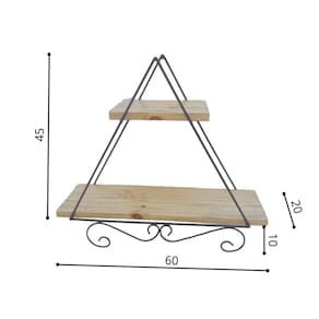 A prateleira decorativa de estilo industrial, com suas medidas de 55 cm de altura, 60 cm de comprimento e 20 cm de largura, é uma peça marcante que une funcionalidade e estética. Seu design robusto incorpora elementos característicos do estilo industrial, destacando-se pela fusão de metal e madeira.