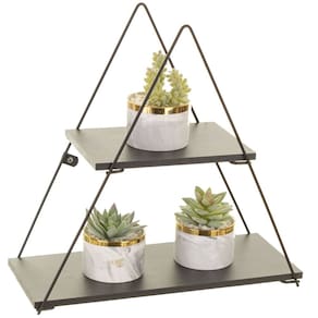 Prateleira Decorativa Triangular com estrutura em aço e pintura eletrostática e prateleira de madeira MDP multifuncional para sala de estar, sala de jantar, quarto, cozinha e qualquer ambiente, ideal para organização e decoração da casa. Organize todos os ambientes.